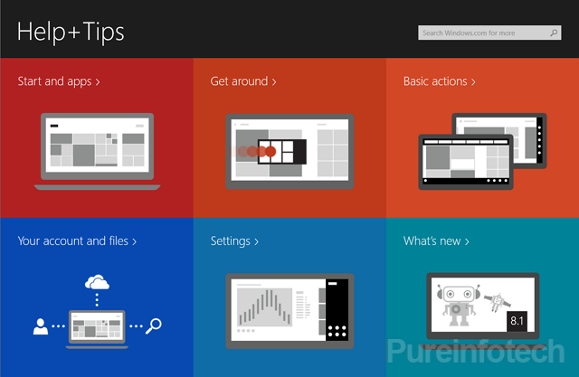 Help + Tips is a new app (or section) in Windows 8.1 that aims to help users navigate and get to know the new operating system using the mouse or touch with a series of tutorials that involves reading and short video clips — everything is just basics –. Although, isn’t very difficult to use the OS, this is something, that if you ask me, should have been since the first release of Windows 8.