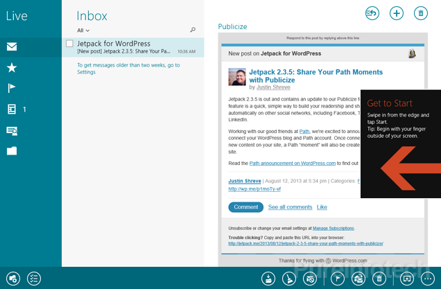 The software giant is finally adding some of the missing scrolling wallpapers (robot and fire dragon) in the Start screen that we’ve seen in demos, but not in Windows 8.1 Preview. In build 9471, Microsoft is also shipping an updated version of Mail with a new sidebar that makes it a lot easier to access to folders, favorite people, and categories. The new Mail also let users open new windows and drag & drop elements functionality is now supported.